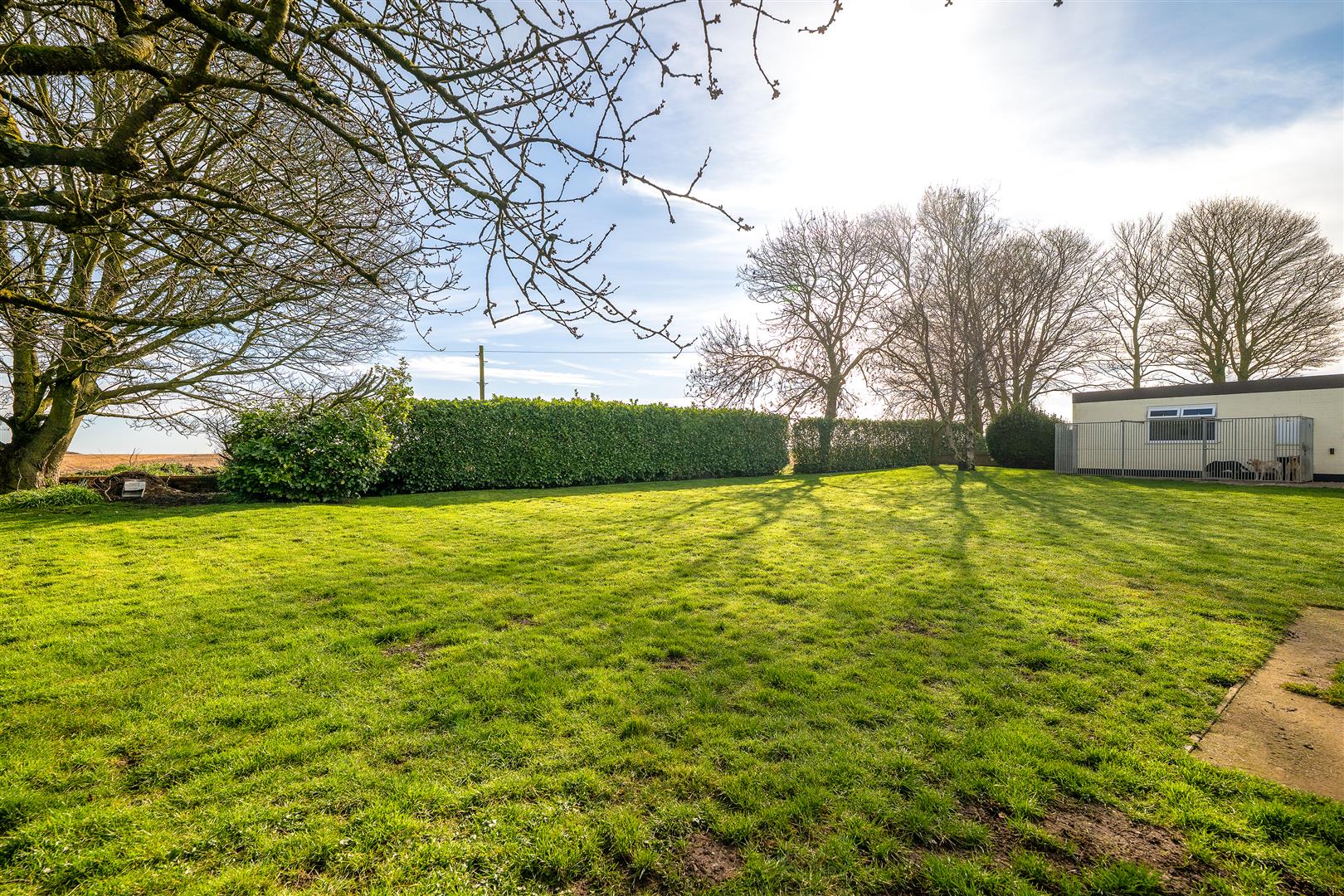 Lawn. Mature hedgerow.