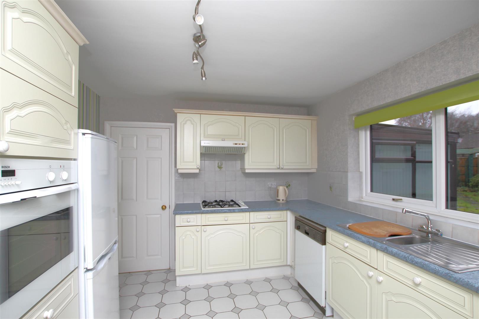 Fitted wall and base units plus larder unit. Roll top work-surfaces with inset single drainer stainless steel sink. Tiled splashbacks and floor. Window to rear. Door to garage. Gas boiler. Double radiator. Half double glazed door to rear garden.