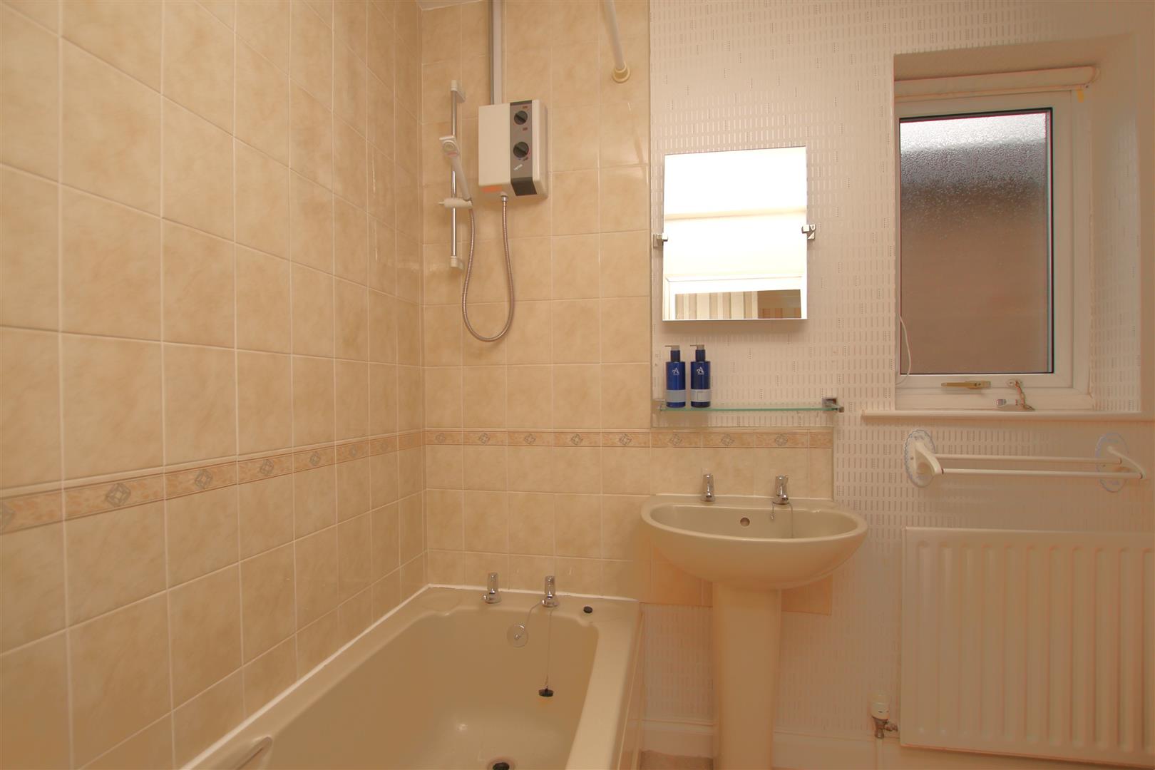 Panelled bath with shower over. Pedestal wash basin. Low Level W.C. Radiator. Window to side. Tiling to water sensitive areas.