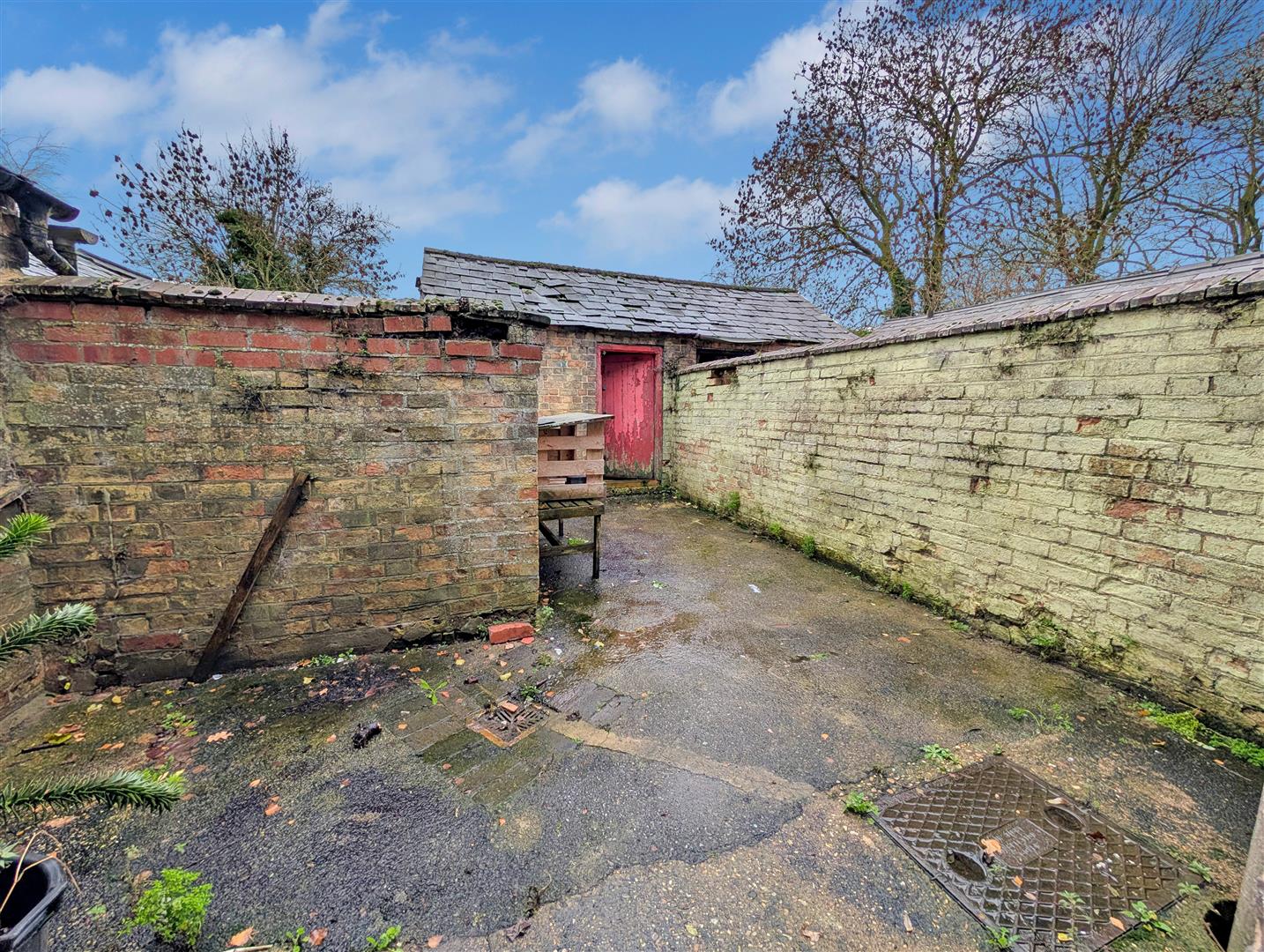 Lawn to the front, courtyard with private outbuilding to the rear, open space beyond for parking 2 vehicles