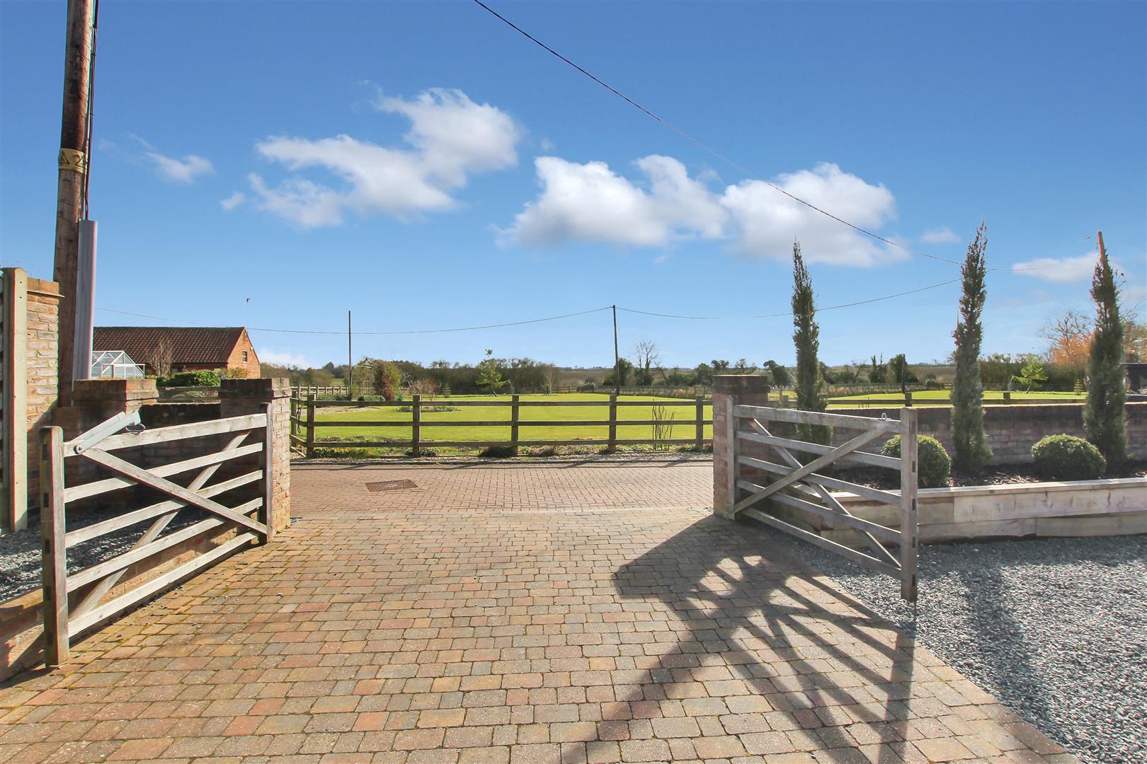 Approached through double opening five bar ranch style gates. Block paved parking and additional gravelled hard-standing. Raised borders with railway sleeper type retainers.