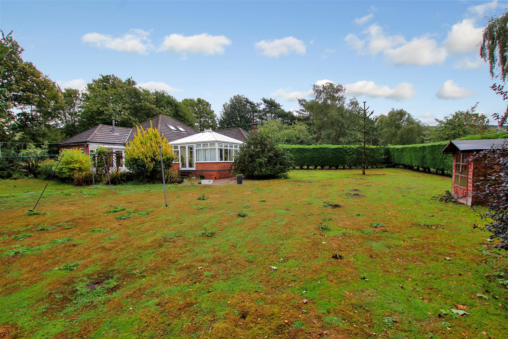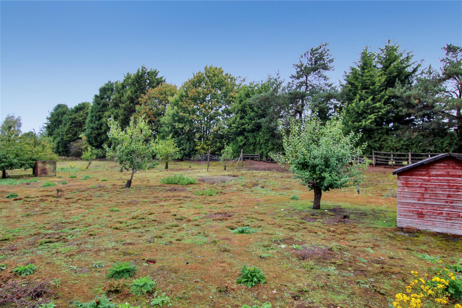 Lawn. Mature shrubs and trees. Three timber sheds. Two Greenhouses. Poly-Tunnel. Orchard area. Vegetable plot.