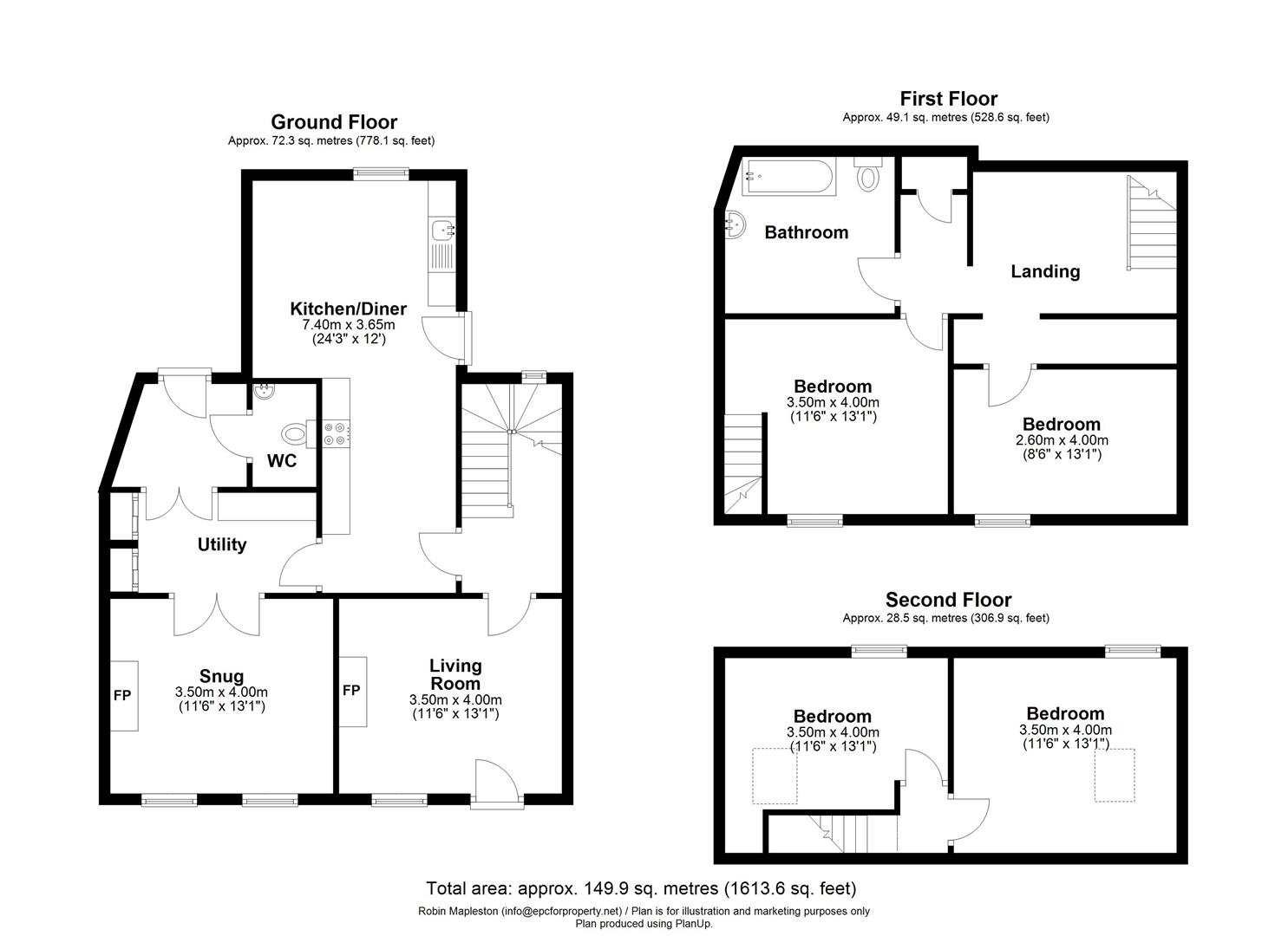 The home has been within the same family for many years and is now ready to be returned to its former glory by the new owner with a program of sympathetic restoration. It has accommodation over three floors with character features including beams, ceiling timbers and latched timber doors. It comprises in brief: Living Room, Inner Hall, Kitchen/Dining Room, Utility Room, Sitting Room, Rear Hallway and Downstairs Cloakroom/Wet-Room. On the First Floor there is a Landing/Study Area, Two Bedrooms and the Main Bathroom whilst on the Second Floor there are Two Further Bedrooms. Outside there is a Good Sized Courtyard Terraced Garden. This home is offered For Sale with No Chain.