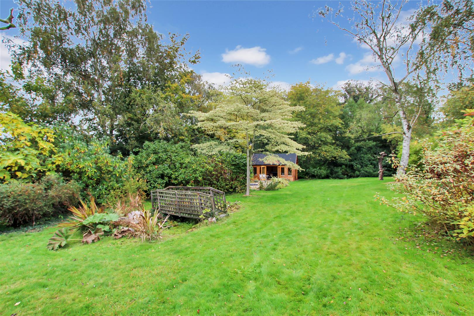 Expanse of shaped lawns. Fruit trees. Wooded area. Pergola. Nature pond with footbridge over. Two timber garden sheds. Folly made up of feature brick wall, two of the old ‘estate’ windows, open fire with chimney and a sandstone paved terrace, this is the perfect outdoor entertaining spot. Access to the Summer House.