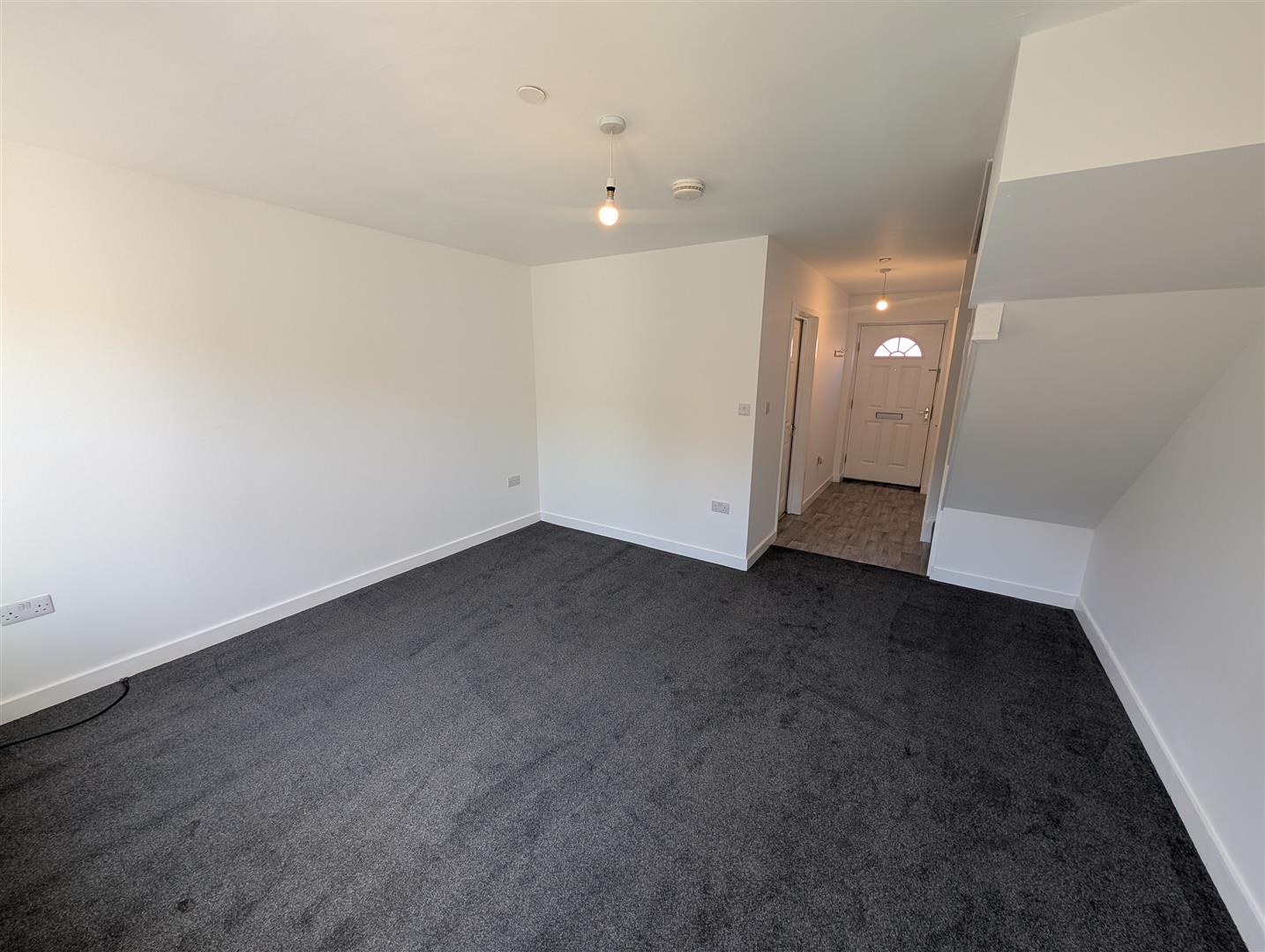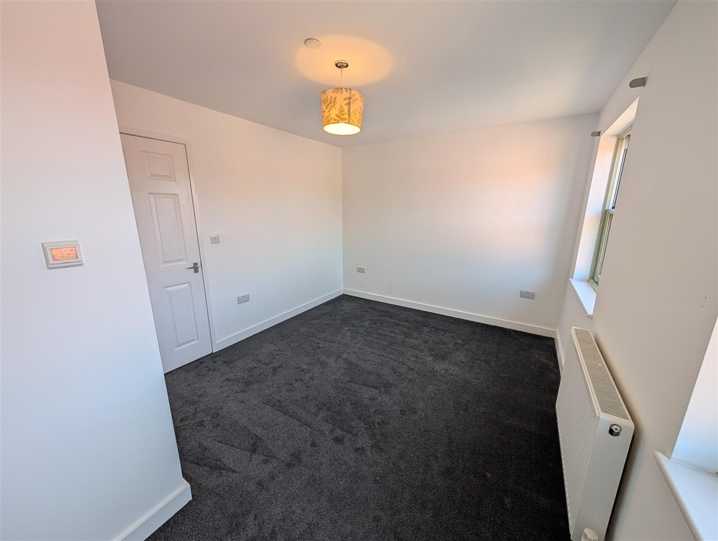 Twin sash effect sage green painted double glazed windows to the front elevation with fitted grey roller blinds, white painted walls, television point, central heating radiator, built in airing cupboard housing the hot water pressurised cylinder.