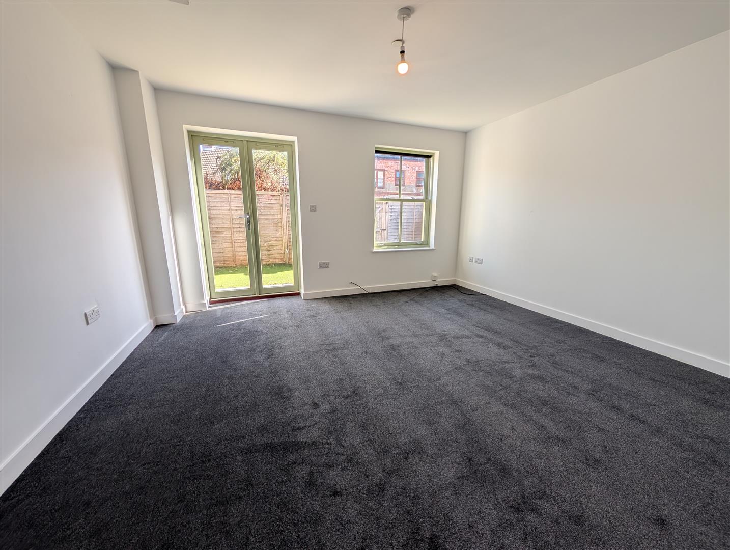 Sash effect sage green painted double glazed window to the rear elevation with matching french doors leading to the rear elevation, white painted walls, twin central ceiling lights, smoke alarm, wall mounted thermostat, television and telephone points, staircase leading to the first floor accommodation, Eco under floor heating, laminate wood effect flooring, doors leading through to the cloak room and kitchen.