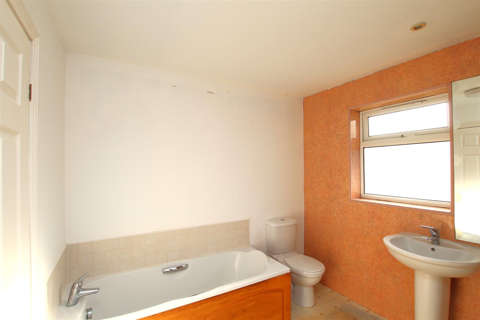 White suite of panelled bath. Step-in shower enclosure. Low Level W.C. Tiled and Mermaid style boarding to water sensitive areas. Window to side. Radiator.
