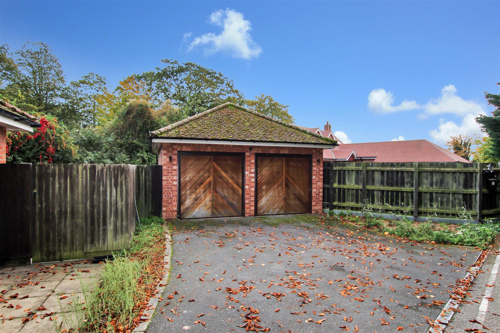 Twin electric up and over doors. Window and door to side. There is also Additional Parking in front of the Garage.